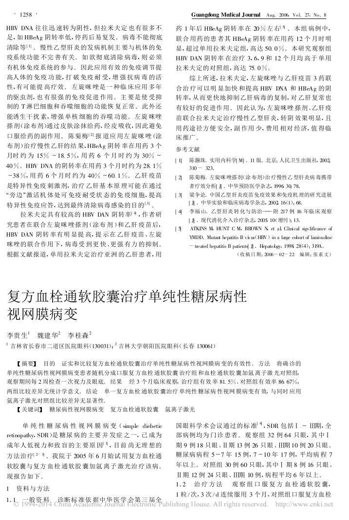 復方血栓通軟膠囊治療單純性糖尿病性視網(wǎng)膜病變