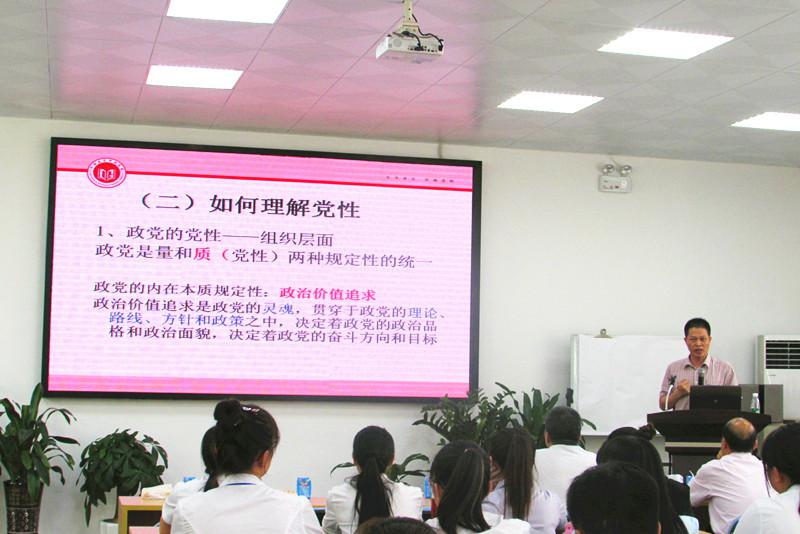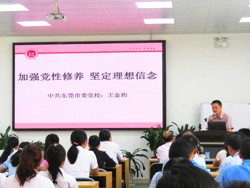 ? ? ? ? ? ??8月6日,公司黨支部邀請中共東莞市委黨校黨建教研室王金豹主任來(lái)公司舉辦了“加強黨性修養,堅定理想信念”的專(zhuān)題講座,廣發(fā)制藥全體員工參加了本次講座。
