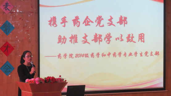 圖2:?藥學(xué)院2014級學(xué)生黨團組織負責人李群芳老師做精彩發(fā)言