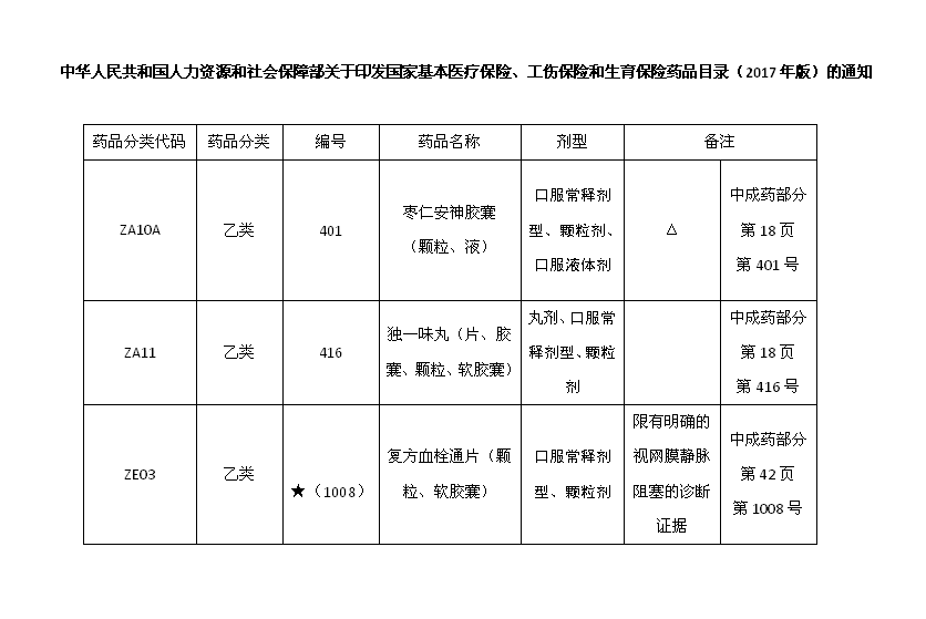 2017年2月21日,中華人民共和國人力資源社會(huì )保障部印發(fā)了《關(guān)于印發(fā)的通知》,正式公布了2017年版國家基本醫療保險、工傷保險和生育保險藥品目錄。