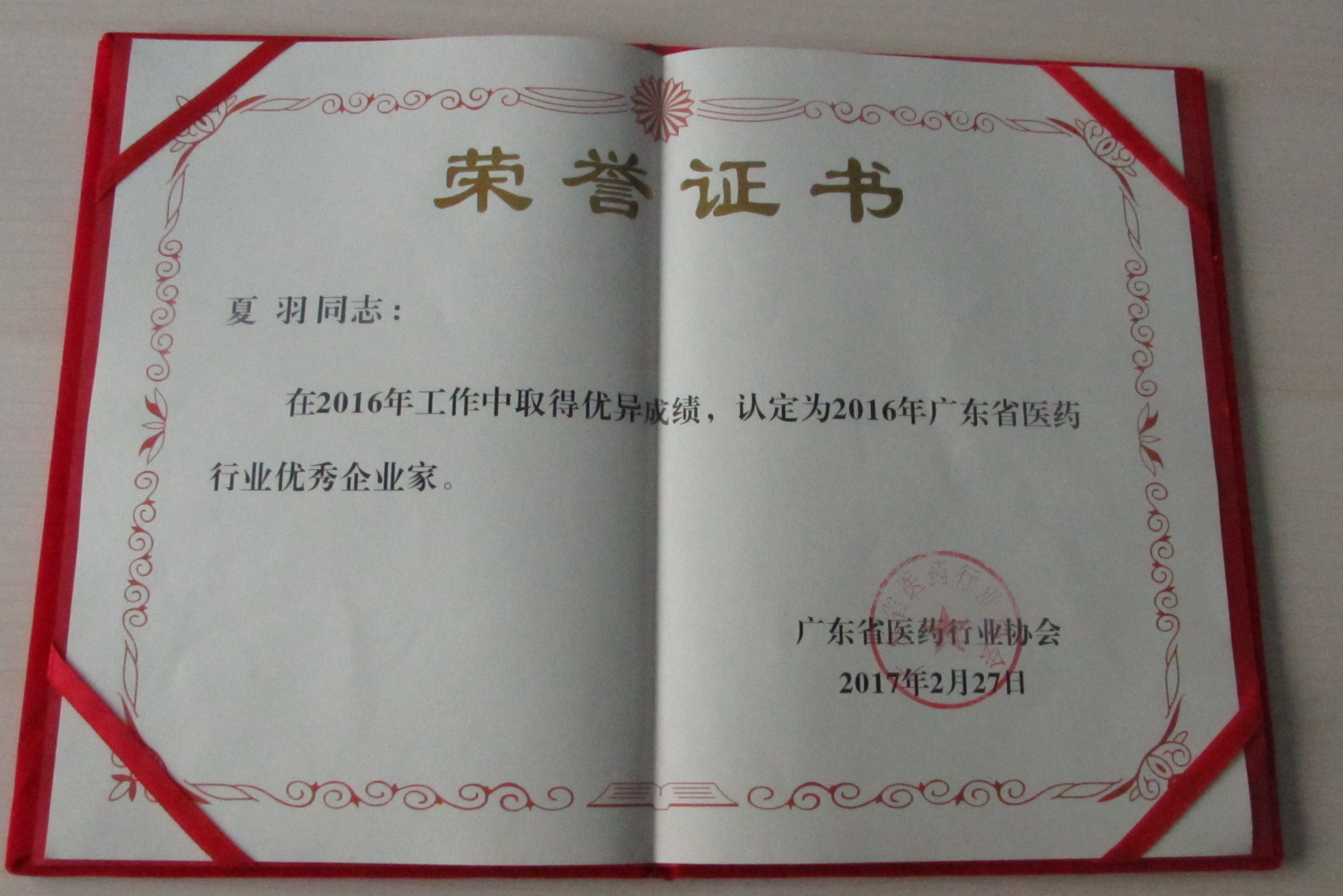 近日,廣東廣發(fā)制藥有限公司榮獲了“2016年廣東省醫藥行業(yè)優(yōu)秀企業(yè)”稱(chēng)號,此外公司執行董事夏羽同志也被評為“2016年廣東省醫藥行業(yè)優(yōu)秀企業(yè)家”。