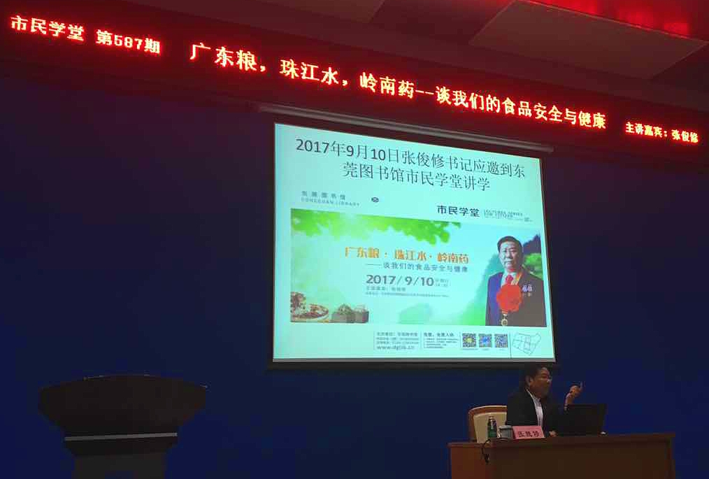東莞圖書(shū)館與市民同舟共濟十余年,截至2017年9月10日, 每周一期的東莞市民學(xué)堂大課進(jìn)行了第587期。本期特邀主講嘉賓,全國優(yōu)秀共產(chǎn)黨員,廣東省社會(huì )組織工會(huì )主席,廣東省食品藥品協(xié)會(huì )黨委張俊修書(shū)記做了以“廣東糧、珠江水、嶺南藥——談我們食品藥品安全與健康”為題的主旨演講。