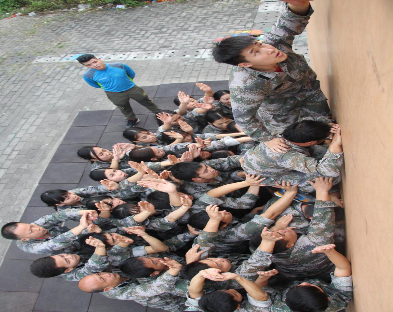 畢業(yè)墻的前面,見(jiàn)證了我們團隊的勇氣、擔當、毅力和血性!“總指揮”勇于擔當;“人梯們”奮不顧身;“護欄們”盡心盡力;攀登者勇于挑戰。