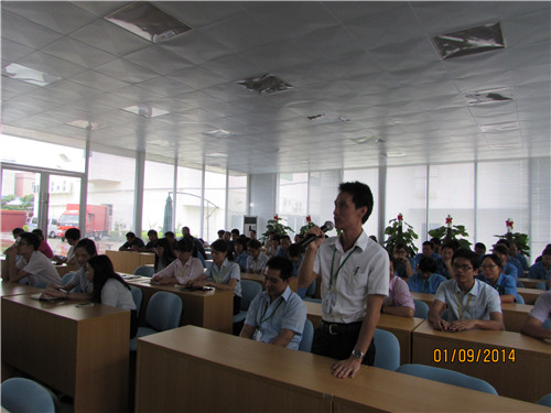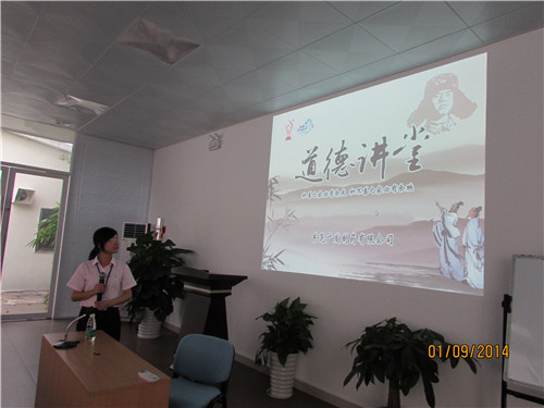 ? ? ? 9月1日下午,“道德講堂”在東莞廣發(fā)制藥多功能廳舉行,由主持人馮淑君帶大家走進(jìn)本期道德講堂。大家對自己的工作“做反省”之后,主持人帶著(zhù)大家“唱一首歌”。
